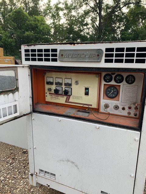 60KW Multiquip Diesel Generator set Enclosed, Model DCA60SS, Selectable voltage 120, 240, 480 volt, 1800 rpm, 60 HZ, Base Fuel Tank, Control Panel, Exhaust, Sound Attenuated Enclosure, 2127 total hours since new, Only used for Emergency Power.